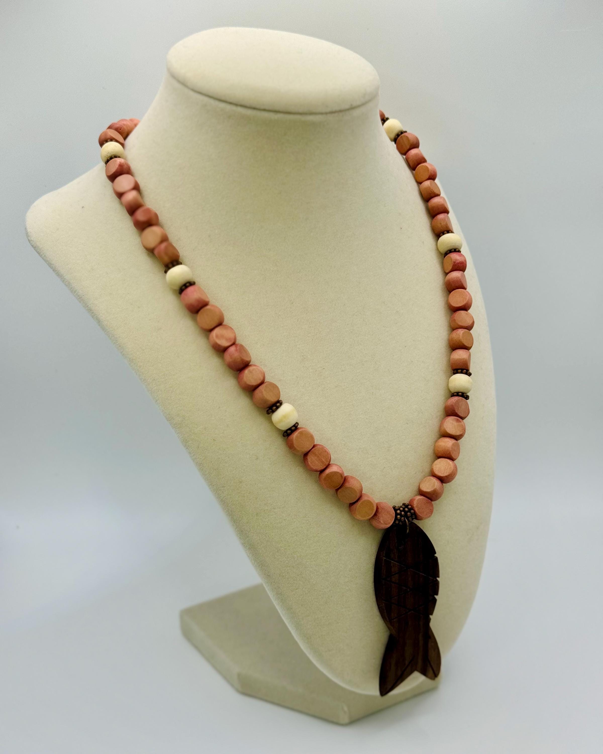 Handmade with love, this pink and brown wood combination necklace is designed slightly longer than standard 16” necklaces for a comfy fit (no extenders needed!). It is a unique and earthly necklace piece perfect to bring a summer vibe to the fall season. Also, it is a different holiday gift for you or a friend.