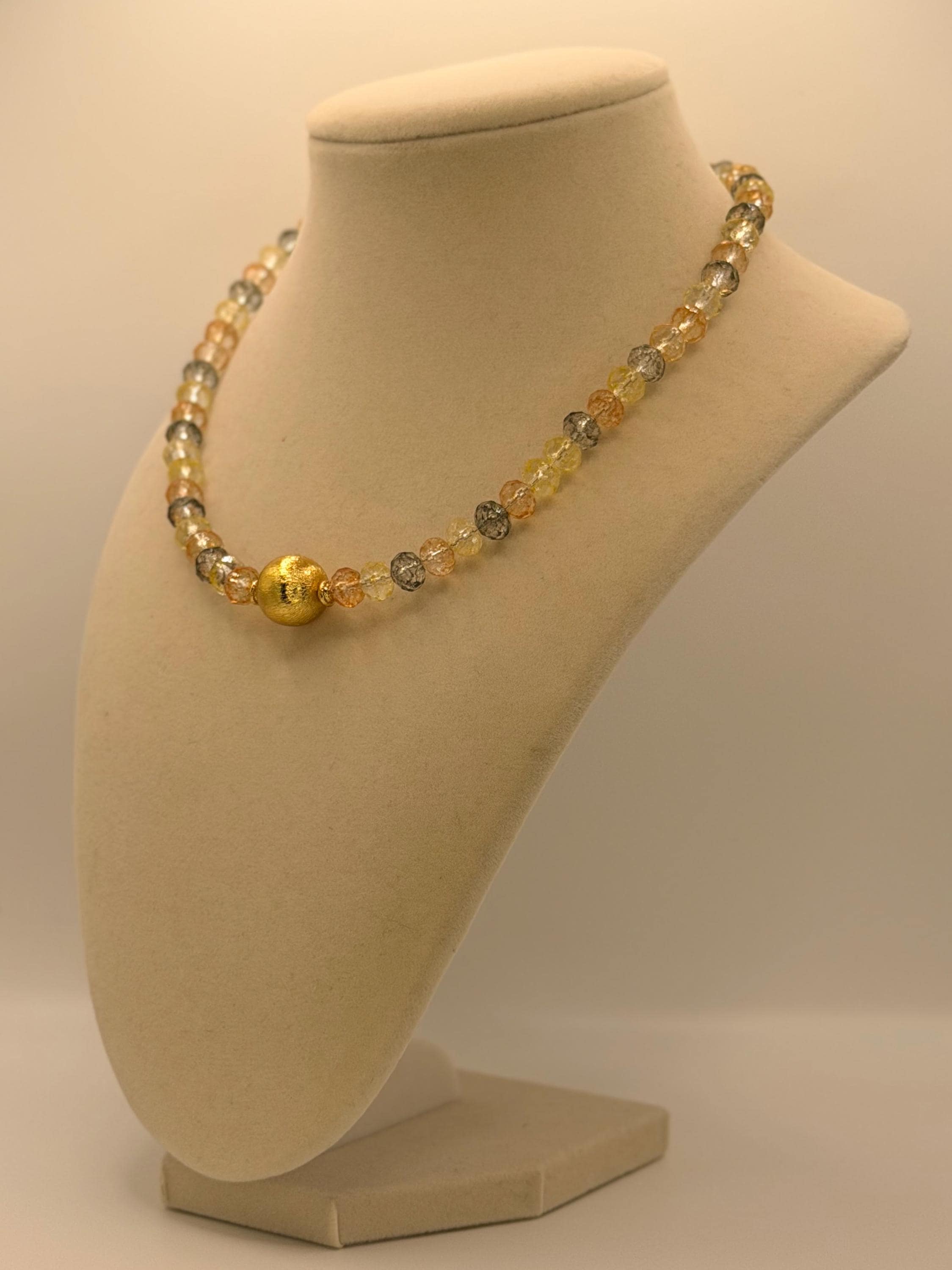 Handmade with love, this beautiful necklace featuring blend of white, grey, yellow, and orange crystals is a subtle and delicate addition to your Christmas holiday jewelry. It is a unique and timeless piece with sunset-inspired crystals perfect for a thoughtful Christmas holiday gift for you or a friend.